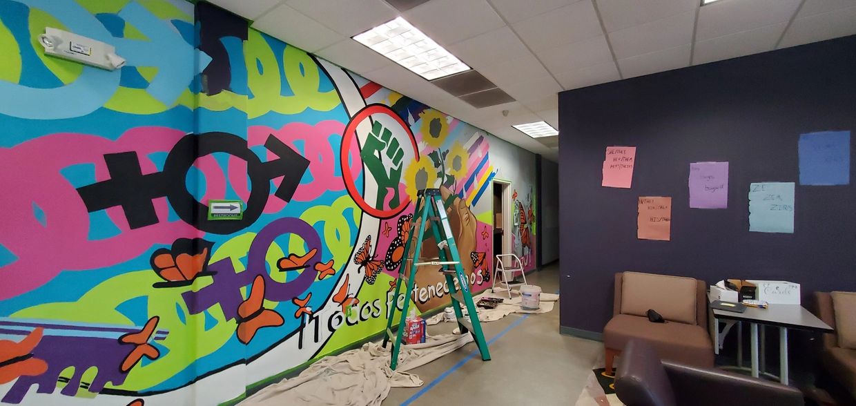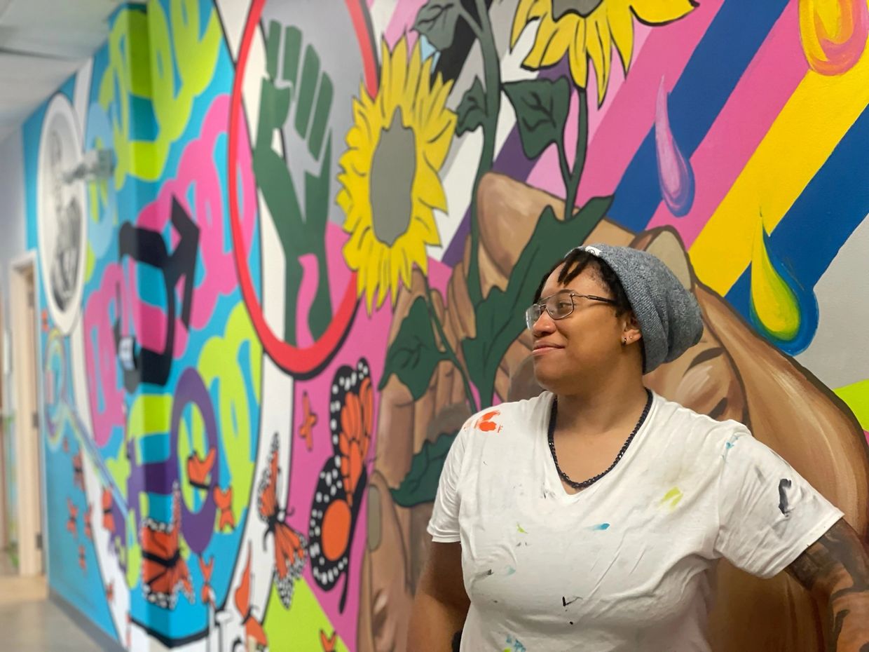 Mural in foyer of Briarpatch Youth Services, Madison, WI. 10' x 8'. Designed and painted by Simone Lawrence. Dedicated to the youth we serve. 2021.