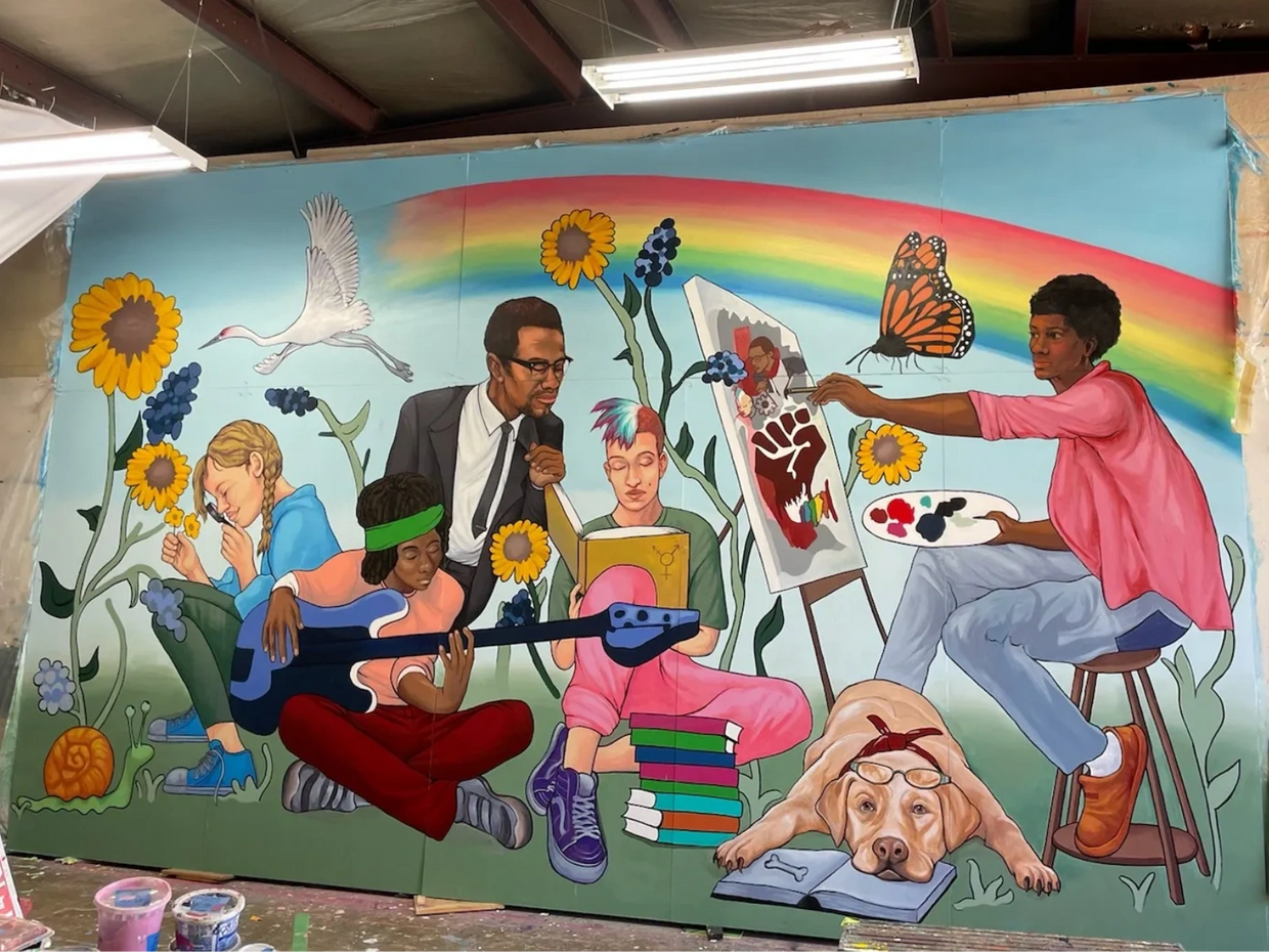 Mural painted in Young Scholars Charter School, Philadelphia, PA. 9' X 9'. Design and painting in collaboration with YS students. 2024.
